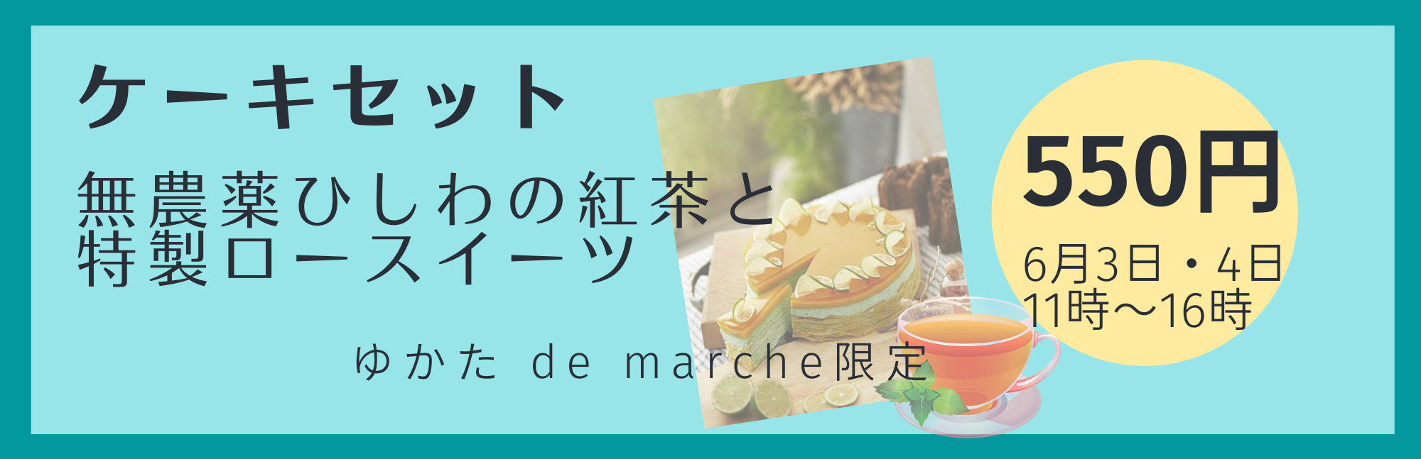 特製のロースイーツと無農薬ひしわの紅茶のケーキセットを特別価格で提供いたします。